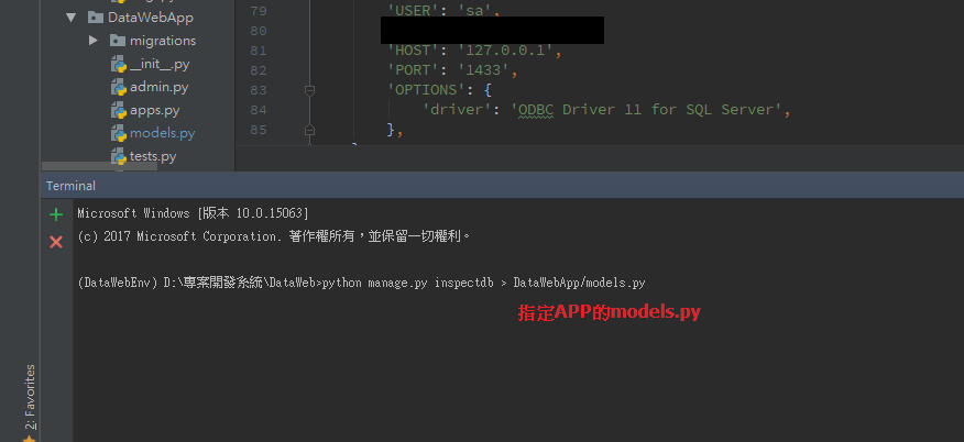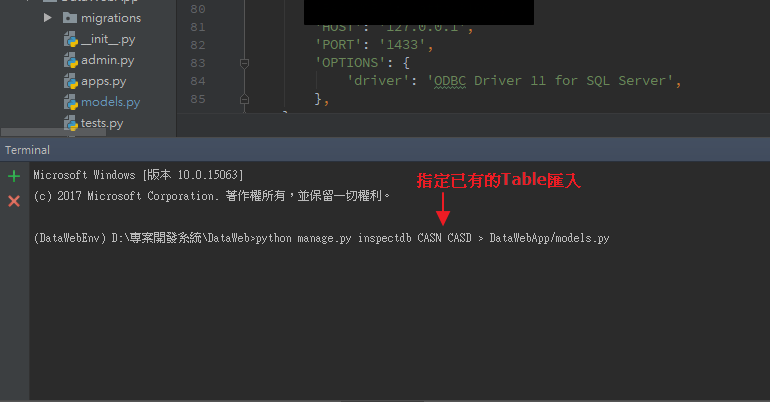 進入Termianl並且輸入 python manage.py inspectdb > DataWebApp/models.py