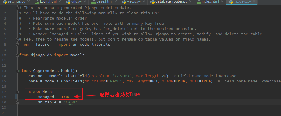 此專案是要寫ERP外掛系統,所以必須將原有的Table匯入models.py