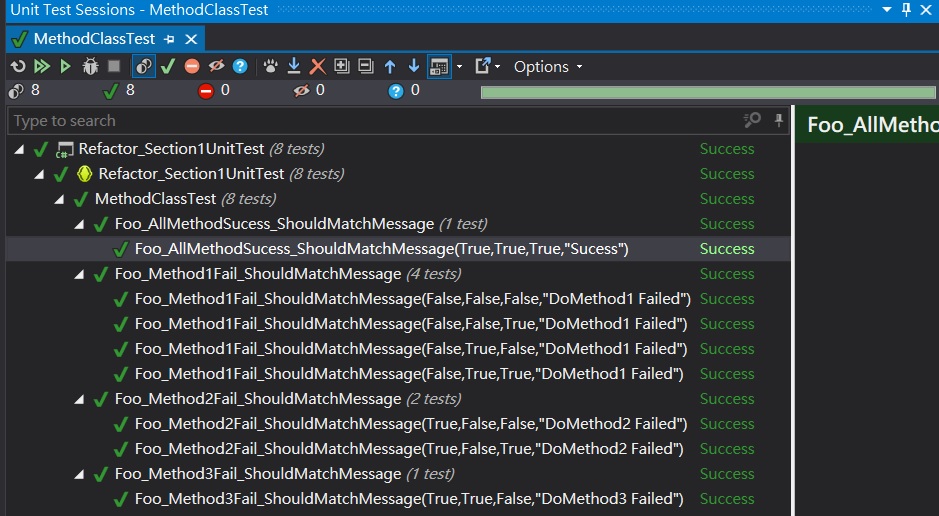 public void Foo_Method1Fail_ShouldMatchMessage(bool result1, bool result2, bool result3, string expected)