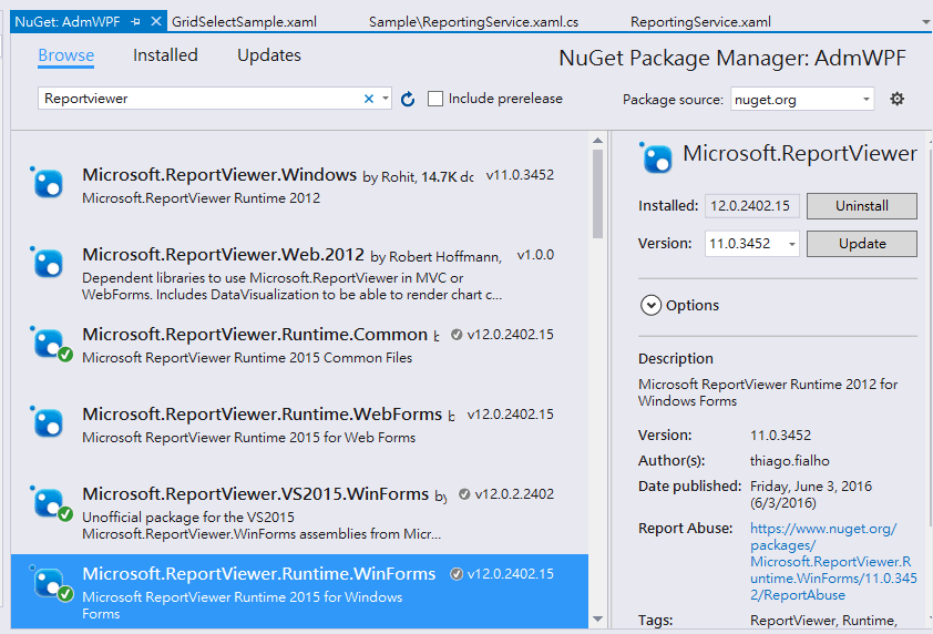 分別安裝Microsort.ReportViewer.Runtime.Common