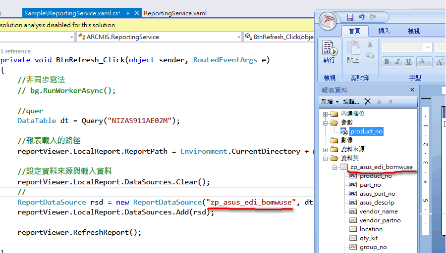 ReportDataSource rsd = new ReportDataSource("zp_asus_edi_bomwuse", dt);