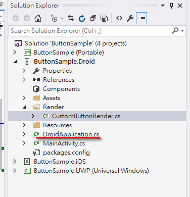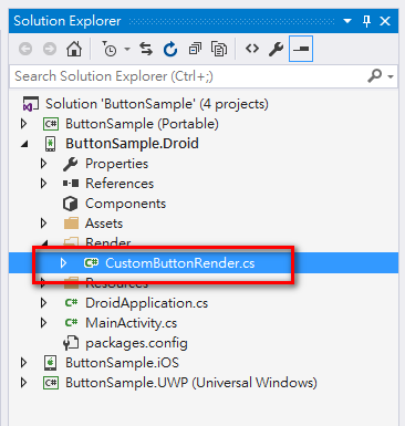 首先在namespace 上宣告一個attribute [assembly:ExportRenderer(typeof(RadiusButton),typeof(CustomButtonRender))]