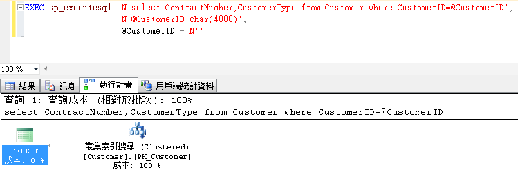 查詢已經改用執行計畫了,由此可見Parameter;上的型別差異其實會影響到查詢效率,