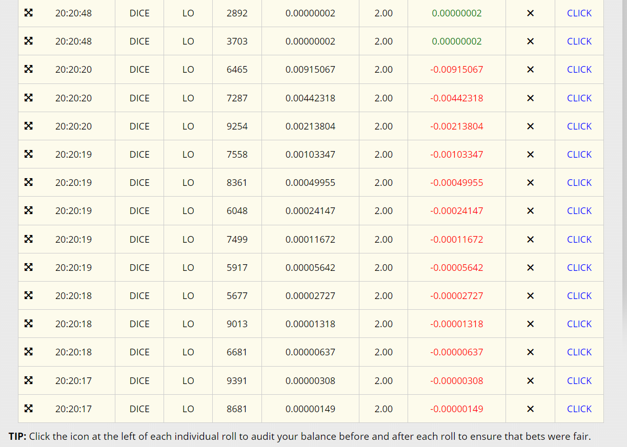 根據我遊戲統計結果是,大約BET 100 BTC會獲得 1 BTC 的回饋