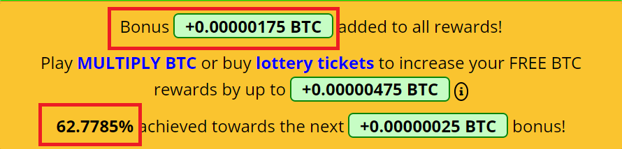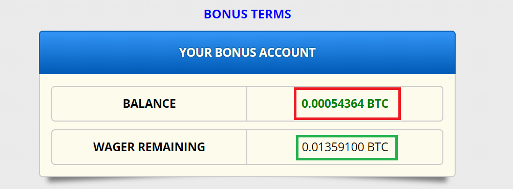 你會獲得紅框內的BTC,不過你必須遊戲累積BET達到綠框的數值後才會變成實際的BTC進入錢包裡。