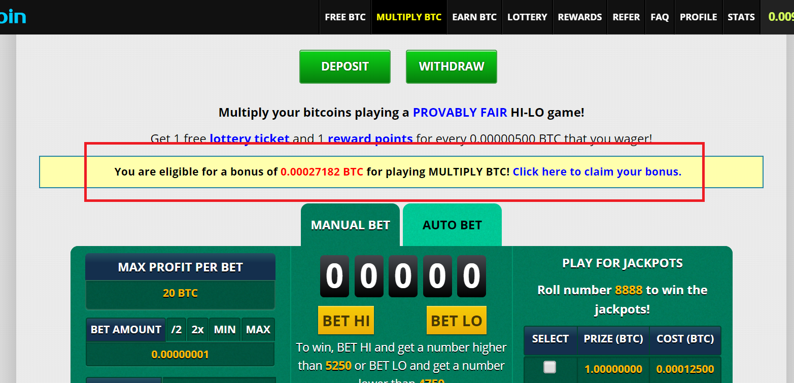 就等於免費得到一倍的BTC就是了,不過需要遊戲BET claim的25倍