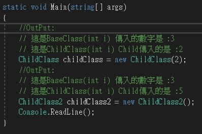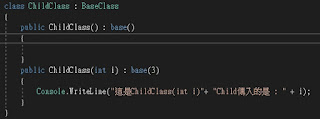 所以就會跑到ChildClass2(int i):base(3) 裡面去