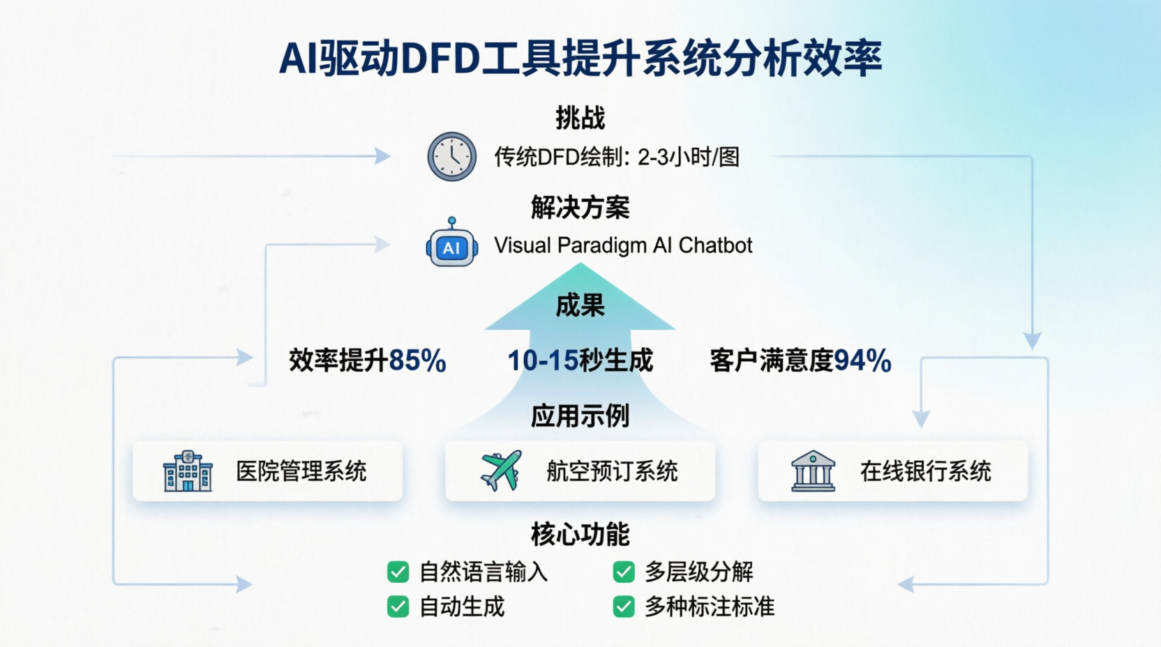 本案例研究探讨了某企业分析团队如何通过采用Visual Paradigm的AI驱动数据流图(DFD)生成器,将系统文档编制时间减少85%,同时提高 diagram 质量和利益相关者满意度。