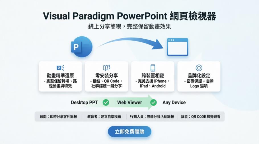 - Share Your Presentations Effortlessly with Visual Paradigm PPT Web Viewer: 使用者導向評測,重點分析分享機制與實際應用情境。