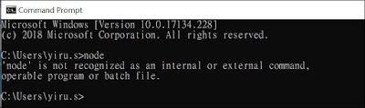 'node' 不是內部或外部命令、可執行的程式或批次檔