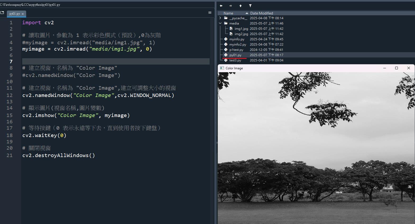 讀取彩色與灰階模式圖片讀取圖片檔:media/img1.jpg