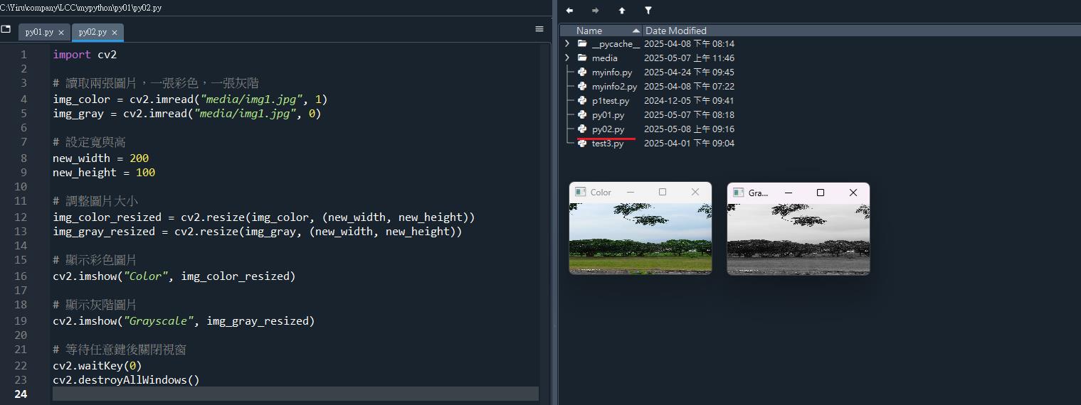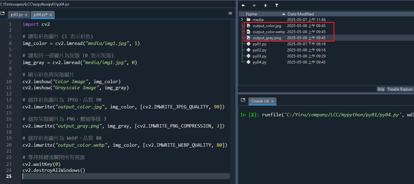 讀取、顯示並儲存彩色與灰階圖片