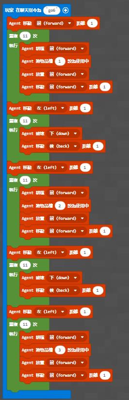 遇到無法前進時,按下 T 輸入 /wb ,開啟世界創造權限,先將紅色地毯移除,再執行go3。