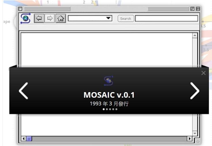 史上第一款獲得普遍使用的瀏覽器,正是Mosaic瀏覽器,第一版於1993年4月22日發佈