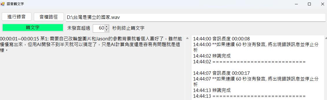 除了中英文以外, 可以理解少量常用台語、區分發言者、發言時間