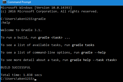 設定完成後,打開命令列,輸入gradle,出現下列圖片就算安裝成功。