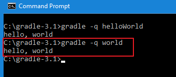 然後執行 "gradle -q world",可以發現,結果居然一樣,如下圖所示。