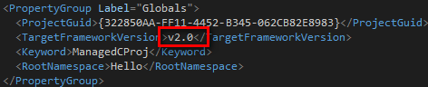 5. Change TargetFramewrokVersion from "v4.0" to "v2.0"