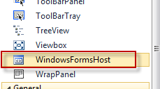 簡單的做好UserControler之後,就要在主要的畫面(XAML檔案)加入這個UserControl了,而由於這是一個COM元件,所以必須要將他放在一個WindowsFormHost控制項當中,這可以在工具箱中找到