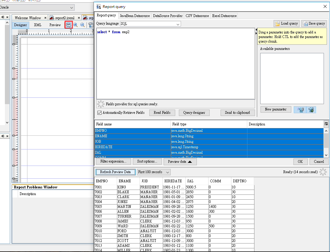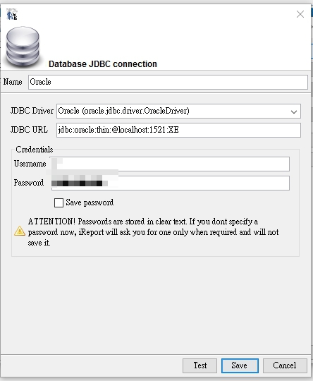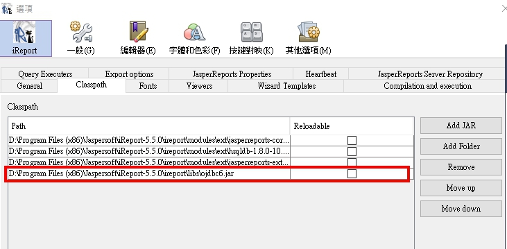 首先準備好JDBC的Driver,如果是用MySQL應該就可以直接使用了,iReport裡有內建。對應到我使用的資料庫版本的Driver是ojdbc6.jar,網路上說有三個方式可以讓iReport吃到JDBC的Driver,不過我試了一輪只有一種方法可以用,不知道是怎麼回事...不過能用就好XD