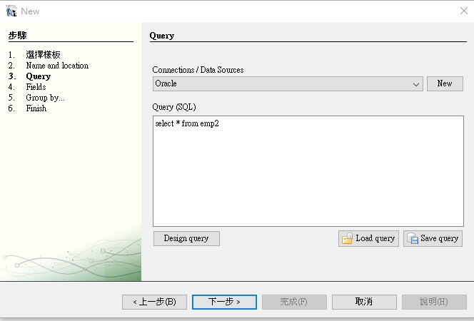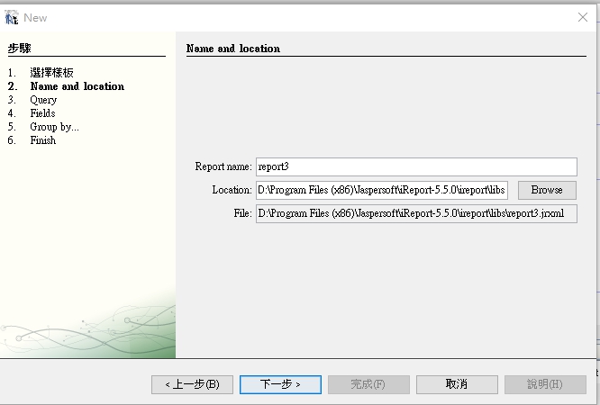 選定模板後底下有兩個按鈕,如果點選「Open this Template」,只有設定檔名跟檔案位置就沒了,點選「Launch Report Wizard」則還會有資料庫的相關設定
