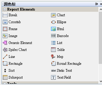 報表中會出現的元素大概有以下幾種,每個元素基本上都有高度、寬度、位置等屬性,還有一些屬性是特有的。每個元素不能跨在多個Band中間,會發生例外錯誤