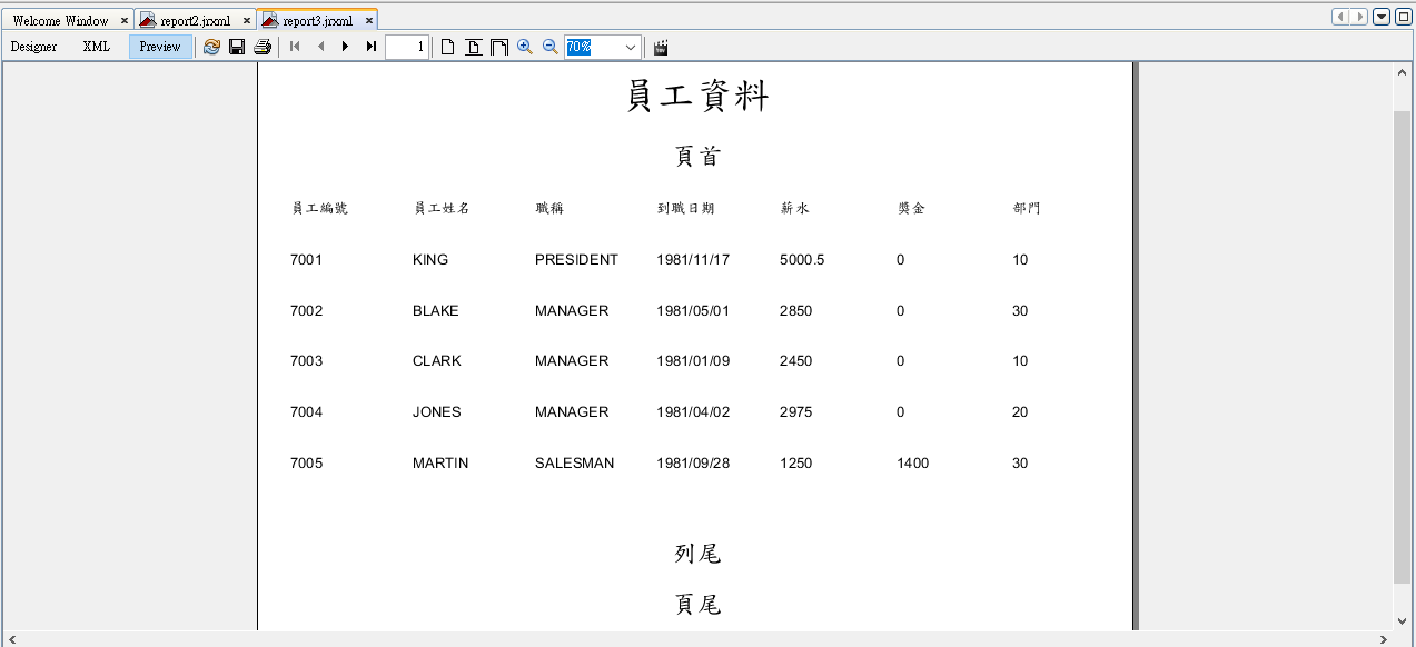 - Detail:報表的內容,實際要呈現的內容放在這邊