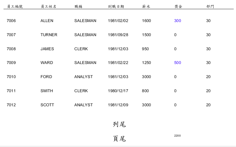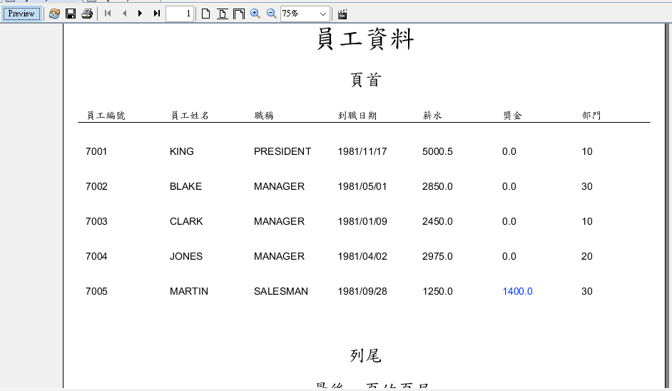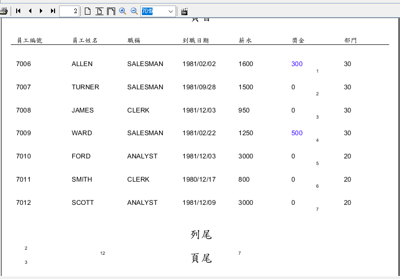 按下Preview,舉例來說輸入7001,就只會出現EMPNO為7001的員工資料