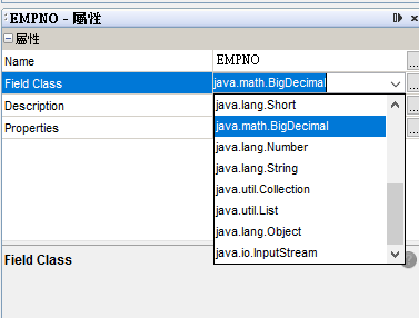 - 如上篇文章所示,透過SQL查詢來把table中的欄位加進Fields中,Field Class是根據該欄位在SQL中的類型來決定的