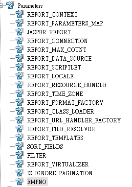 | REPORT_CONNECTION | java.sql.Connection物件,報表可以根據傳入的JDBC Connection取得相應的資料 |
