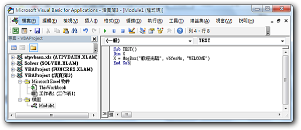 X = MsgBox("歡迎光臨", vbYesNo, "WELCOME")
