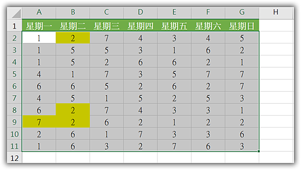 點取「格式化在此公式為TRUE的值」文字方塊輸入「=AND(A2=7,A$1="星期一")」字串。
