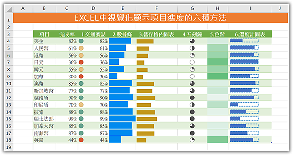 Excel中視覺化顯示項目進度的6種方法(第1-5種方法)  |