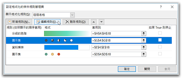 點取「確定」鈕,回到【設定格式化的條件規則管理員】對話方塊。