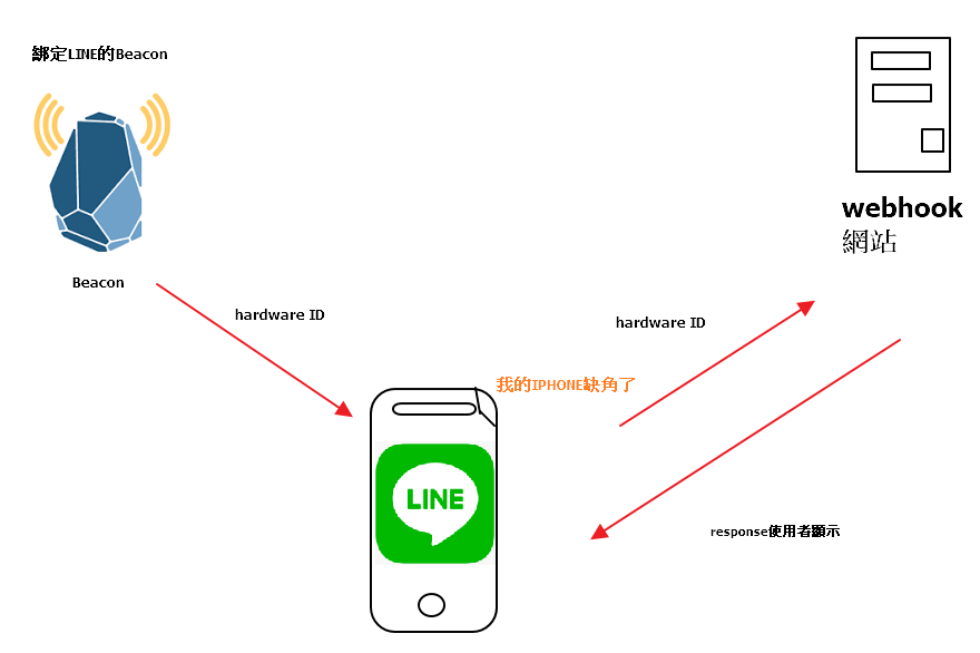 2.接下來LINE收到Beacon資料後回到前言,知道你在附近後的應用,可能可以...定位、推撥相關資訊、玩個尋寶等等..