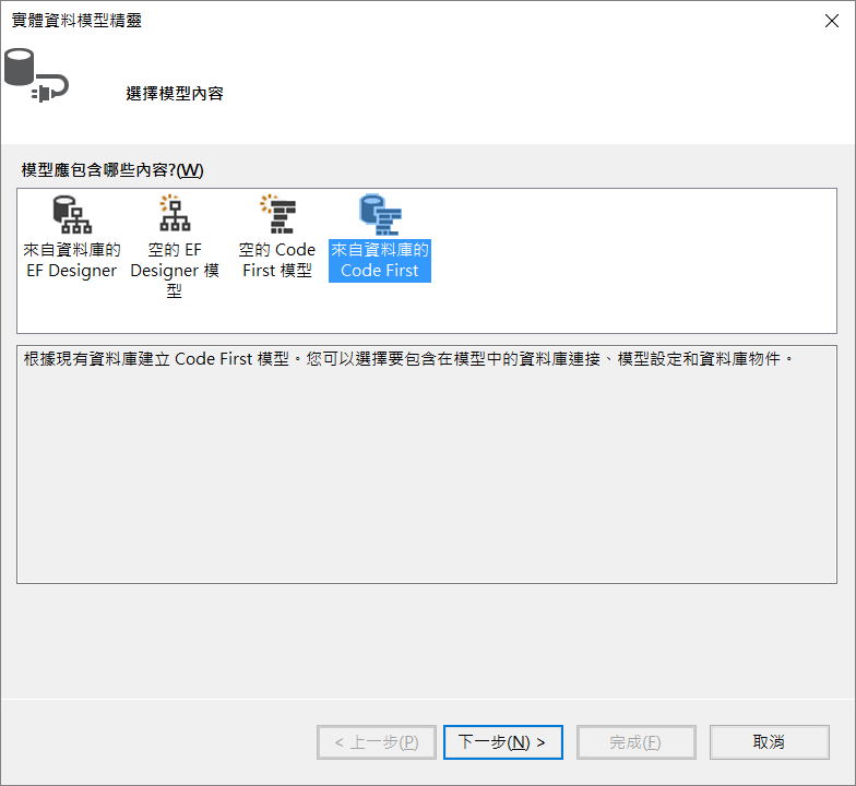 2. 建置過程中,選擇「來自資料庫的 Code First」