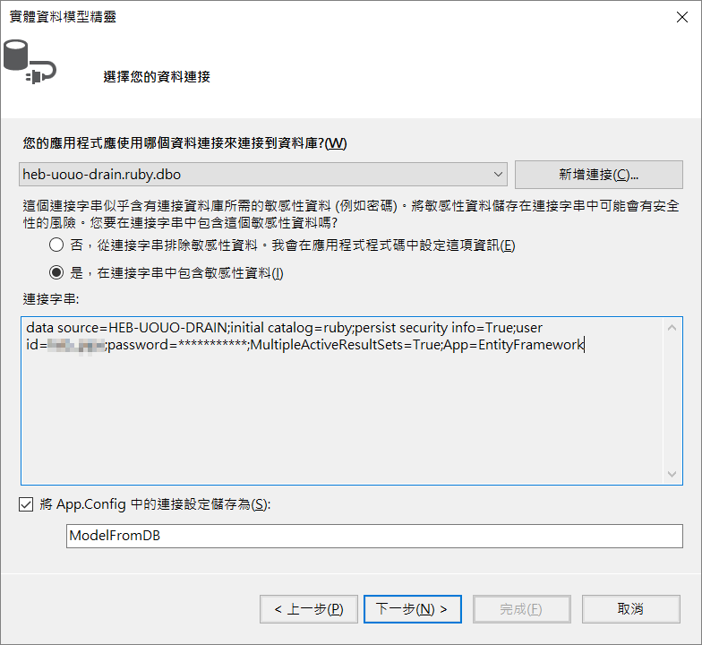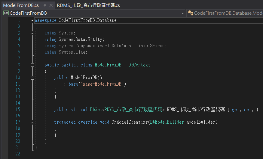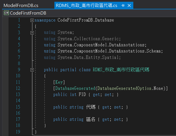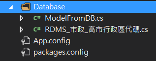 5. 建置成功後,產生一支繼承 DbContext 的 Class 檔,以及所選取資料表轉成 Model 的 Class 檔