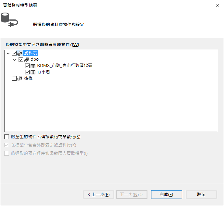 上述步驟完成既有資料庫轉成 Code First 的 Model,但這過程中遇到一個問題,在設置過程中,還有選擇一項「行事曆」的資料表,怎麼沒有被轉換出來呢?原因是因為該資料表,沒有 Primary Key,EF 需要有 Primary Key 來才能執行資料的新增、修改以及刪除,所以當需要透過「來自資料庫的 Code First」這個功能建立 Code First Model 時,記得 Table 和 View 要有設置 Primary Key。