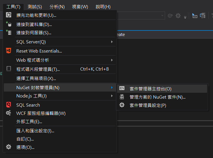 6. 建置專案的 Migrations 目錄,開啟「套件管理器主控台」