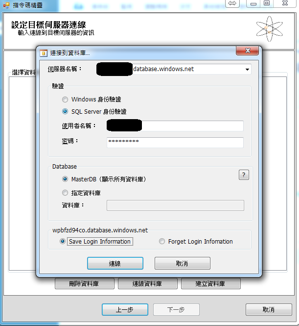 料庫部署到Windows Azure SQL Database"功能),找了SQL Database Migration Wizard v3.15.6, v4.15.6 and v5.15.6 才搞定資料庫的上傳。