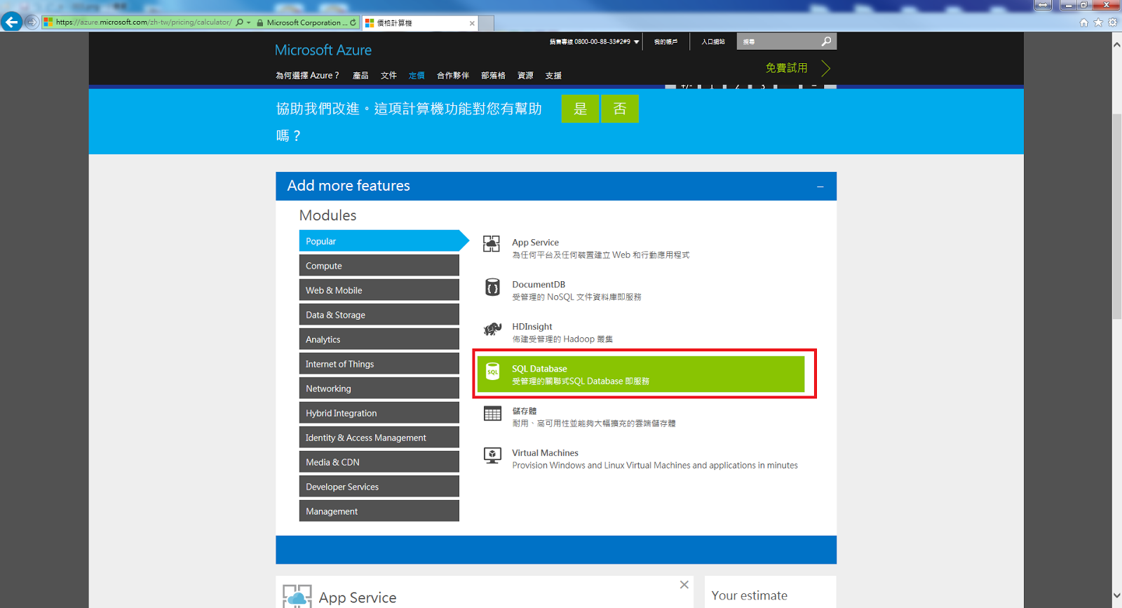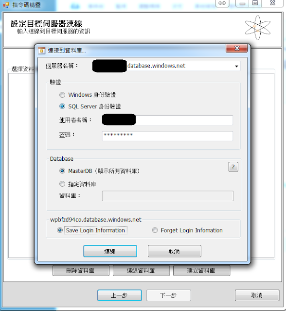 庫Azure SQL Database這部分花了不少時間(因為使用MS SQL Server 2014 Express 沒有"將資