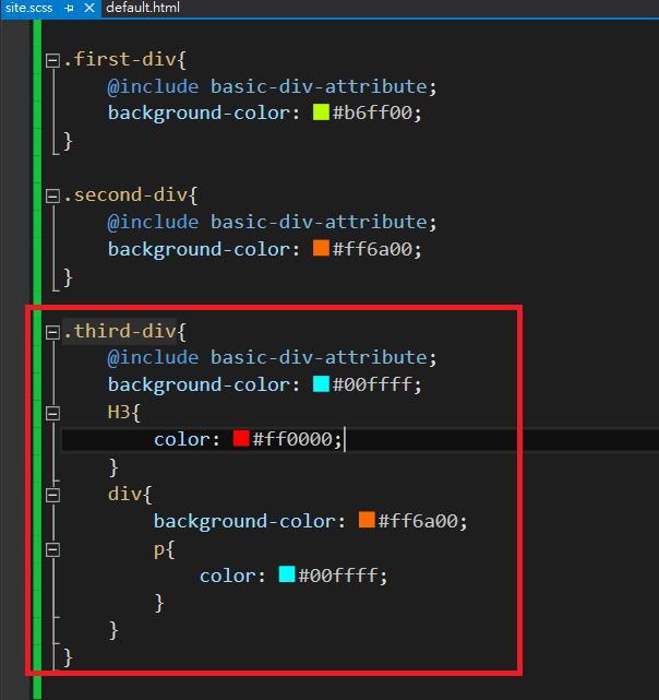 Step.3 在.frist-div與.second-div內加上 @include basic-div-attribute