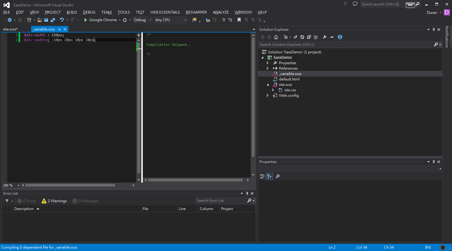 其中debug/warn Message部分因為個人安裝 web essentials,還不知道怎麼將