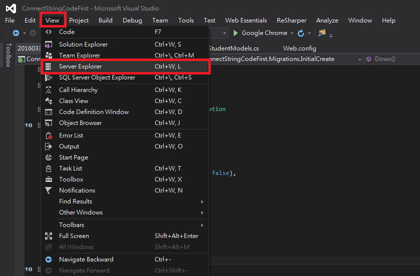 Step.1 檢視(View) -> Server Exploer