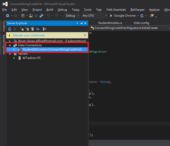 Step.2 展開Data Connections、展開StudentDbContext 進行資料庫連線