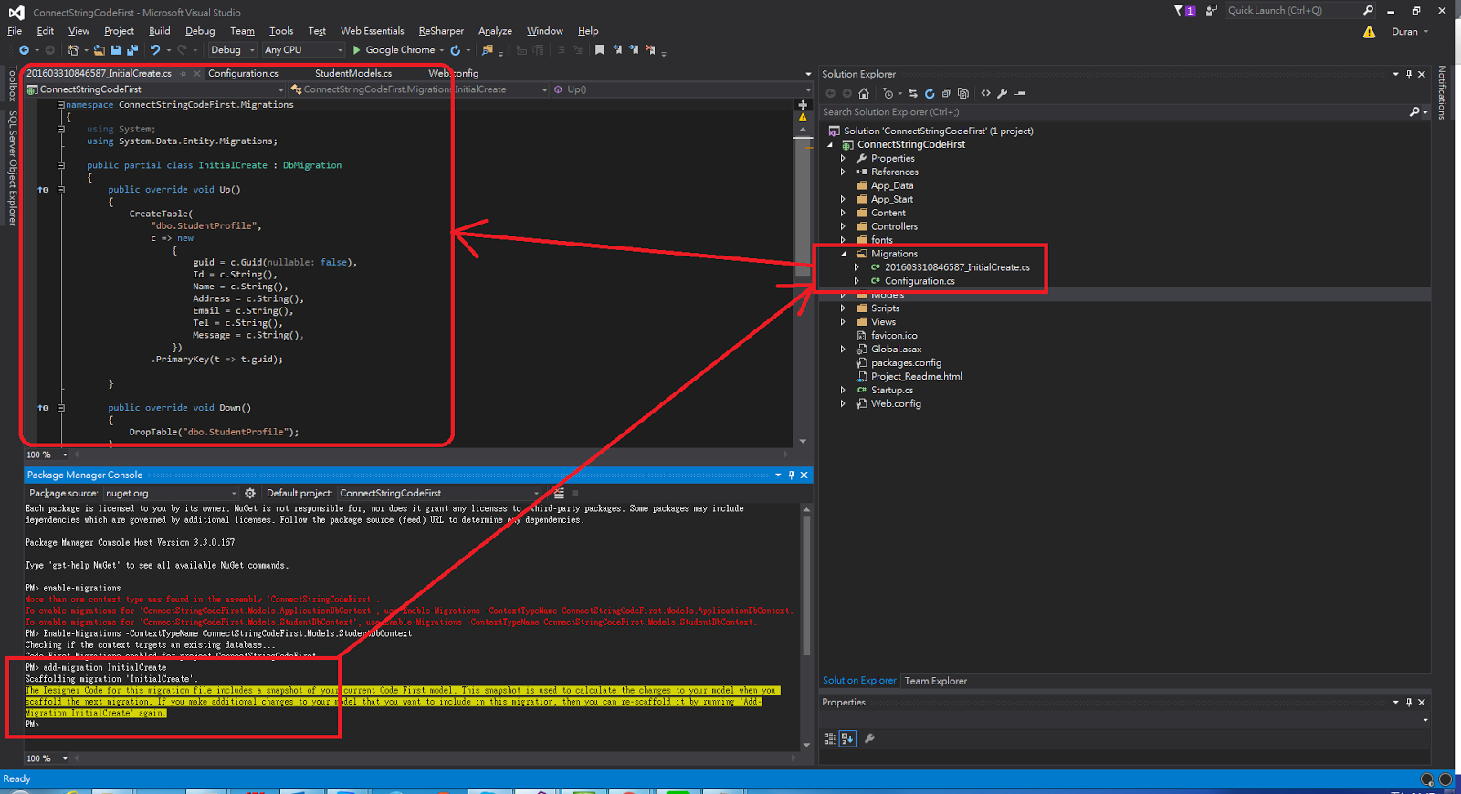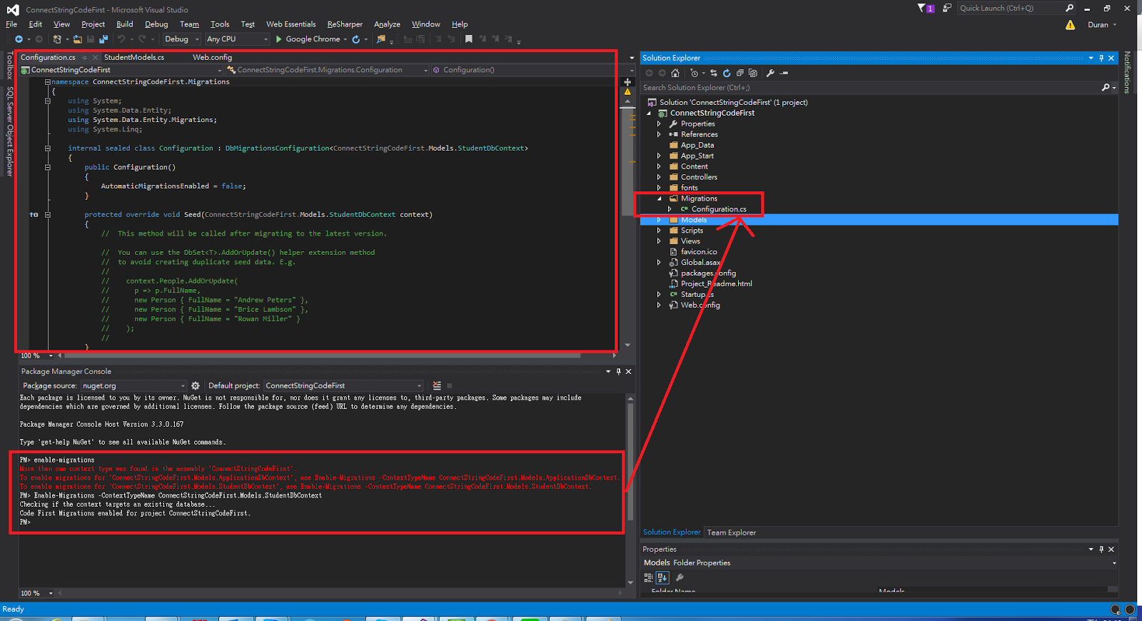 Enable-Migrations -ContextTypeName ConnectStringCodeFirst.Models.StudentDbContext