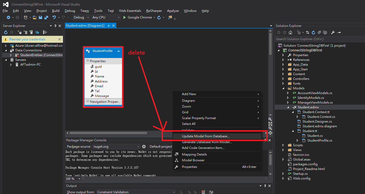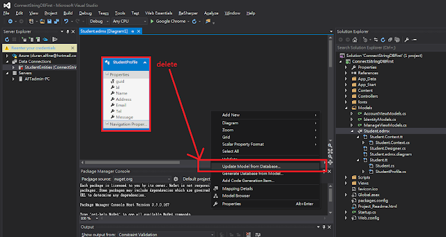 如果需要更新資料表,可以對視窗點選右鍵,選擇Update Model from Database,