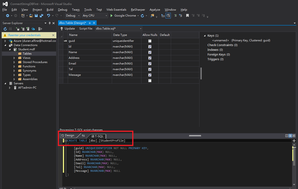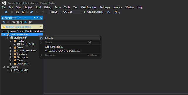 Step 4.展開(Data Connect -> 點選 Student.mdf 進行連線。