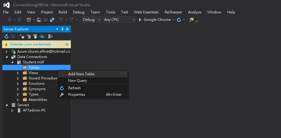 Step 5. 右鍵點選Tables,選擇新增資料表(Add New Table)