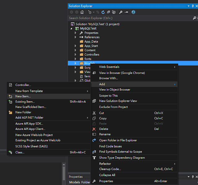 Step 11. 右鍵點選Model 資料夾 -> Add -> New Item